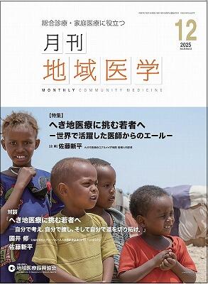 Vol.39/12 2025年12月発行 ●目次 対談 へき地医療に挑む若者へ -自分で考え,自分で捜し,そして自分で道を切り拓け./國井 修×佐藤新平 特集 へき地医療に挑む若者へ -世界で活躍した医師からのエール- エディトリアル/佐藤新平 誰かの当たり前の一日が,何事もなく終わるために/大場次郎 地域医療からシリコンバレーへ!/池野文昭 へき地,極地,昭和基地!/西山幸子 千葉からラオスへ:公衆衛生の夢を追いかけて/柴田和香 地域に向き合う力 -日米のプライマリ・ケア現場からの学び-/山下大輔 Think Globally, Act Locally(地球規模で考え,地域で行動する)/中村安秀 地域に始まり,地域に還る医療 -保健外交の現場から見えたもの-/喜多洋輔 原著 COVID-19流行後の介護予防推進に向けた地域診断:青森県三戸町B地区における量的・質的検討/東舘紗貴・塩谷竜之介・他 Let’s Try! 医療安全 具体的事例から考える医療安全!“未然防止の取り組み” 第146回 医師の“チェック”に関わる事例発生を未然防止する!-事例の発生要因から考える未然防止対策-/石川雅彦 ちょっと画像でCoffee Break よろずX線画像診断⑱/牧田幸三 全国の地域からリレーでつなぐ 私の地域医療 山梨県 とにかく何でもやってみた.地域での私の経験:「専門は“いな科”です」/宮﨑 葵 栃木県 最後の砦として/君島俊祐 JADECOMアカデミー NP・NDC研修センター 特定ケア看護師の挑戦 特定ケア看護師の臨床研修レポート/大沼英恵 研修医日記 Life is like a box of chocolates/谷尾甚吾 自治医大NOW 高校の進路指導教員向け大学説明会開催/松韻会 県南地区懇談会開催/医学部1年生に対する白衣の贈呈式実施/第23回自治医科大学シンポジウム開催/大学院医学研究科 第10回大学院生ワークショップ「The 10th JMU Graduate Students Workshop」開催/「卒後ワークライフバランスについて考える会 2025年度J-PASSブロック担当会議」開催/自治医科大学および両附属病院へのご支援のお願い 月刊地域医学 バックナンバー Vol.39/12 2025年12月発行 Vol.39/11 2025年11月発行 Vol.39/10 2025年10月発行 Vol.39/9 2025年9月発行 Vol.39/8 2025年8月発行 Vol.39/7 2025年7月発行 Vol.39/6 2025年6月発行 Vol.39/5 2025年5月発行 Vol.39/4 2025年4月発行 Vol.39/3 2025年3月発行 Vol.39/2 2025年2月発行 Vol.39/1 2025年1月発行 Vol.38/12 2024年12月発行 Vol.38/11 2024年11月発行 Vol.38/10 2024年10月発行 Vol.38/9 2024年09月発行 Vol.38/8 2024年08月発行 Vol.38/7 2024年07月発行 Vol.38/6 2024年06月発行 Vol.38/5 2024年05月発行 Vol.38/4 2024年04月発行 Vol.38/3 2024年03月発行 Vol.38/2 2024年02月発行 Vol.38/1 2024年01月発行 Vol.37/12 2023年12月発行 Vol.37/11 2023年11月発行 Vol.37/10 2023年10月発行 Vol.37/9 2023年09月発行 Vol.37/8 2023年08月発行 Vol.37/7 2023年07月発行 Vol.37/6 2023年06月発行 Vol.37/5 2023年05月発行 Vol.37/4 2023年04月発行 Vol.37/3 2023年03月発行 Vol.37/2 2023年02月発行 Vol.37/1 2023年01月発行 Vol.36/12 2022年12月発行 Vol.36/11 2022年11月発行 Vol.36/10 2022年10月発行 Vol.36/9 2022年09月発行 Vol.36/8 2022年08月発行 Vol.36/7 2022年07月発行 Vol.36/6 2022年06月発行 Vol.36/5 2022年05月発行 Vol.36/4 2022年04月発行 Vol.36/3 2022年03月発行 Vol.36/2 2022年02月発行 Vol.36/1 2022年01月発行 Vol.35/12 2021年12月発行 Vol.35/11 2021年11月発行 Vol.35/10 2021年10月発行 Vol.35/9 2021年09月発行 Vol.35/8 2021年08月発行 Vol.35/7 2021年07月発行 Vol.35/6 2021年06月発行 Vol.35/5 2021年05月発行 Vol.35/4 2021年04月発行 Vol.35/3 2021年03月発行 Vol.35/2 2021年02月発行 Vol.35/1 2021年01月発行 Vol.34/12 2020年12月発行 Vol.34/11 2020年11月発行 Vol.34/10 2020年10月発行 Vol.34/9 2020年09月発行 Vol.34/8 2020年08月発行 Vol.34/7 2020年07月発行 Vol.34/6 2020年06月発行 Vol.34/5 2020年05月発行 Vol.34/4 2020年04月発行 Vol.34/3 2020年03月発行 Vol.34/2 2020年02月発行 Vol.34/1 2020年01月発行 Vol.33/12 2019年12月発行 Vol.33/11 2019年11月発行 Vol.33/10 2019年10月発行 Vol.33/9 2019年09月発行 Vol.33/8 2019年08月発行 Vol.33/7 2019年07月発行 Vol.33/6 2019年06月発行 Vol.33/5 2019年05月発行 Vol.33/4 2019年04月発行 Vol.33/3 2019年03月発行 Vol.33/2 2019年02月発行 Vol.33/1 2019年01月発行 Vol.32/12 2018年12月発行 Vol.32/11 2018年11月発行 Vol.32/10 2018年10月発行 Vol.32/9 2018年09月発行 Vol.32/8 2018年08月発行 Vol.32/7 2018年07月発行 Vol.32/6 2018年06月発行 Vol.32/5 2018年05月発行 Vol.32/4 2018年04月発行 Vol.32/3 2018年03月発行 Vol.32/2 2018年02月発行 Vol.32/1 2018年01月発行 Vol.31/12 2017年12月発行 Vol.31/11 2017年11月発行 Vol.31/10 2017年10月発行 Vol.31/9 2017年09月発行 Vol.31/8 2017年08月発行 Vol.31/7 2017年07月発行 Vol.31/6 2017年06月発行 Vol.31/5 2017年05月発行 Vol.31/4 2017年04月発行 Vol.31/3 2017年03月発行 Vol.31/2 2017年02月発行 Vol.31/1 2017年01月発行 Vol.30/12 2016年12月発行 Vol.30/11 2016年11月発行 Vol.30/10 2016年10月発行 Vol.30/9 2016年09月発行 Vol.30/8 2016年08月発行 Vol.30/7 2016年07月発行 Vol.30/6 2016年06月発行 Vol.30/5 2016年05月発行 Vol.30/4 2016年04月発行 Vol.30/3 2016年03月発行 Vol.30/2 2016年02月発行 Vol.30/1 2016年01月発行 Vol.29/12 2015年12月発行 Vol.29/11 2015年11月発行 Vol.29/10 2015年10月発行 Vol.29/9 2015年09月発行 Vol.29/8 2015年08月発行 Vol.29/7 2015年07月発行 Vol.29/6 2015年06月発行 Vol.29/5 2015年05月発行 Vol.29/4 2015年04月発行 Vol.29/3 2015年03月発行 Vol.29/2 2015